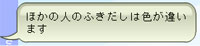 ふきだしの色 講師のふきだしは青色、自分のふきだしは黄色、ほかの人のふきだしは少し暗い色になっています。ほかの人が自分のふきだしを見た場合も、このように見えています。 |